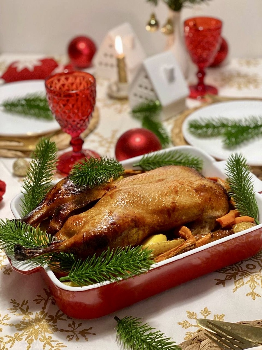7. Подавайте готовую утку вместе с печеными овощами или фруктами для создания идеального гастрономического дополнения.