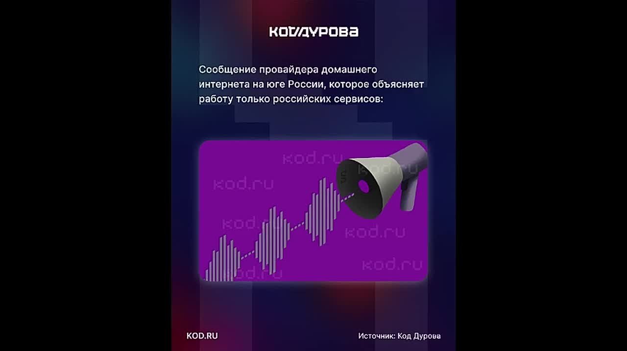 На юге России тестируют так называемый «белый список» — доступ остаётся только к заранее одобренным ресурсам. Этот режим уже подтверждён в Ростове-на-Дону у одного из провайдеров: у абонентов открываются только сайты из списка, остальные — полностью недоступны, — пишет экспертное издание «Кода Дурова».