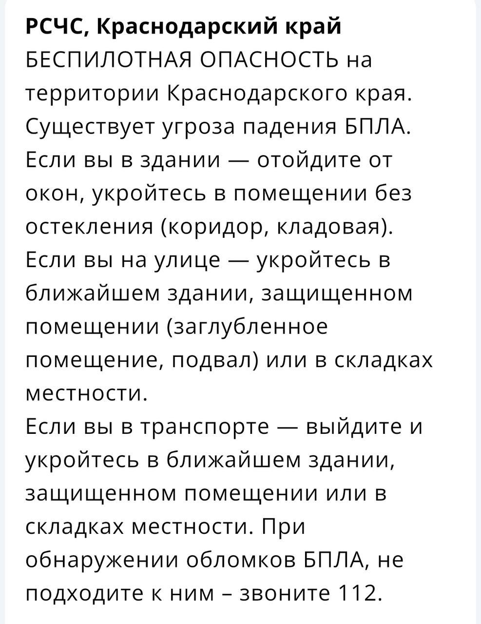 Внимание! Опасность БПЛА.Сохраняйте спокойствие. Пожалуйста, позаботьтесь о собственной безопасности и безопасности близких.Телефон экстренных служб — 112.