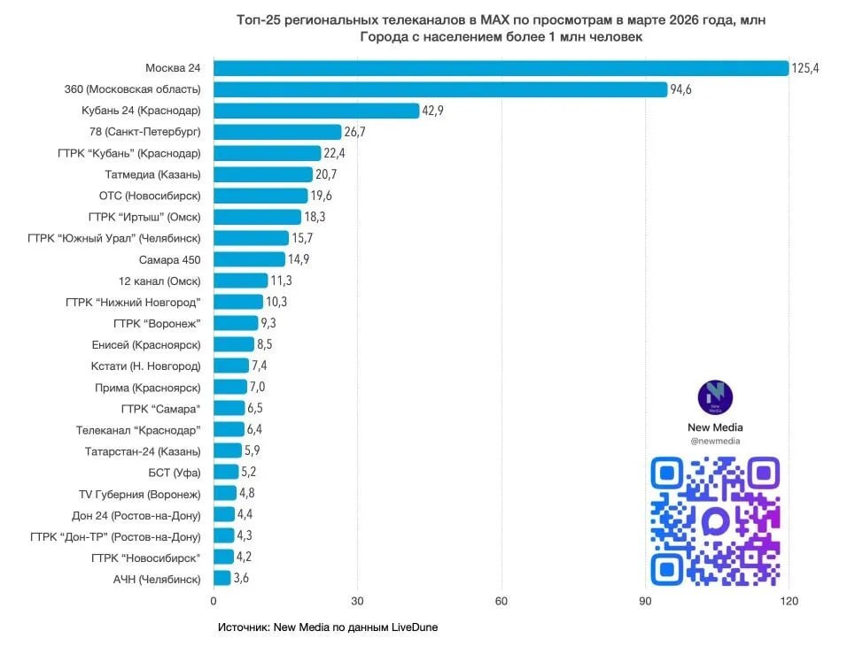 «Кубань 24» попал в топ-3 региональных телеканалов по просмотрам в MAX.