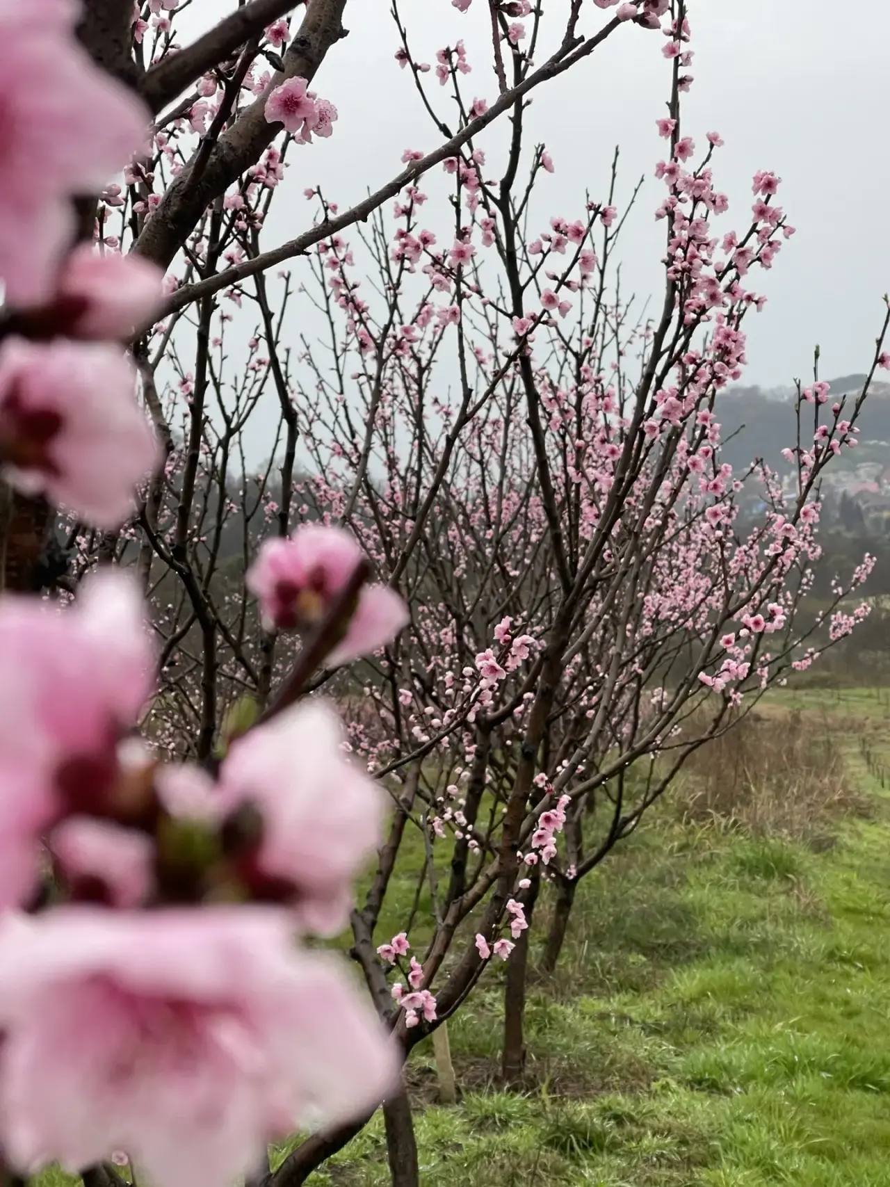 Это невероятно красиво, но очень мимолётно. Персик опыляется и завязывается буквально за несколько дней, так что розовое облако скоро исчезнет.