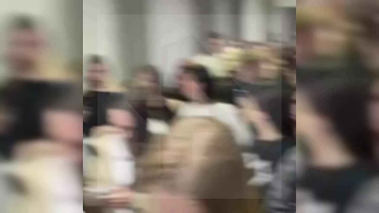 На кадрах, предварительно, толпящиеся зрители покидают зал.
