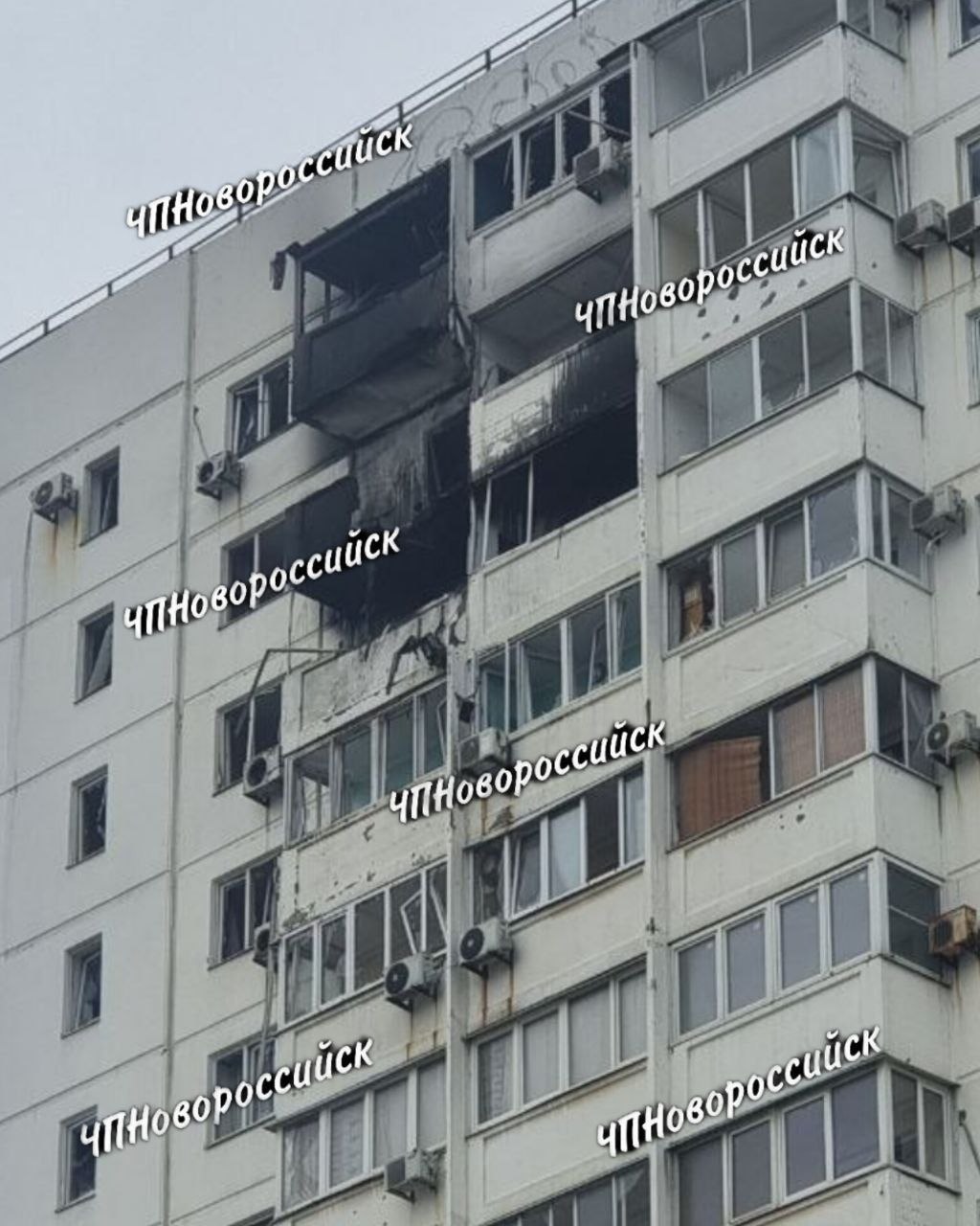 Последствия атаки на жилой дом в Новороссийске.