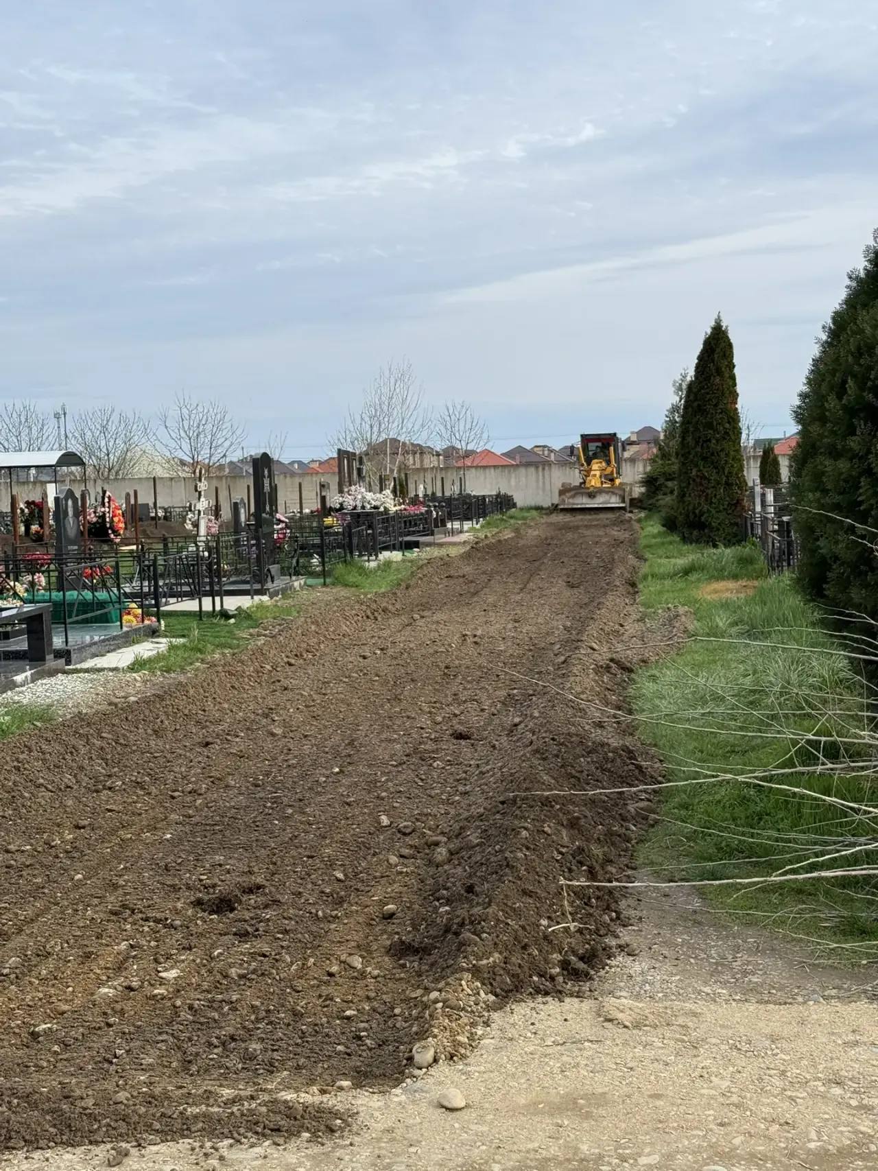 На территории Пригородного кладбища в посёлке Северном грейдируют почти 4 тысячи кв. м проезжих частей.