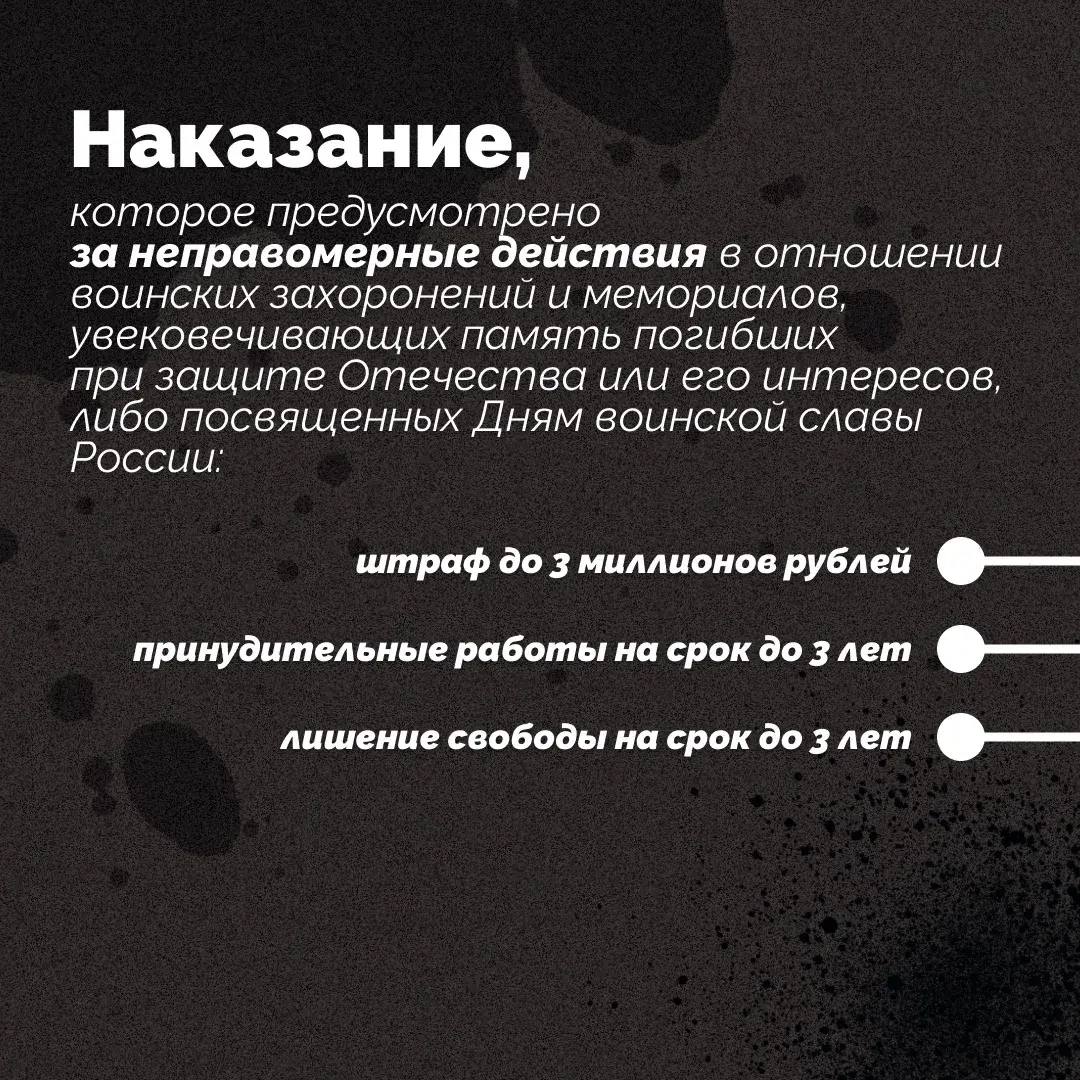 За вандализм и осквернение памятников предусмотрена серьёзная ответственность — вплоть до уголовной. И мы будем пресекать любые попытки неуважения к памяти героев.