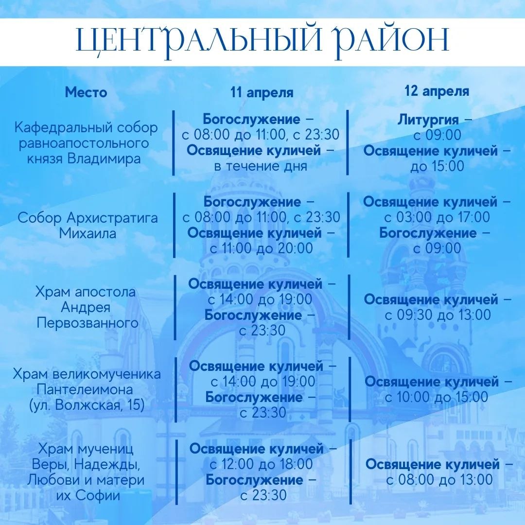 Пасхальные службы пройдут во всех православных храмах города. Расписание богослужений – в наших карточках.