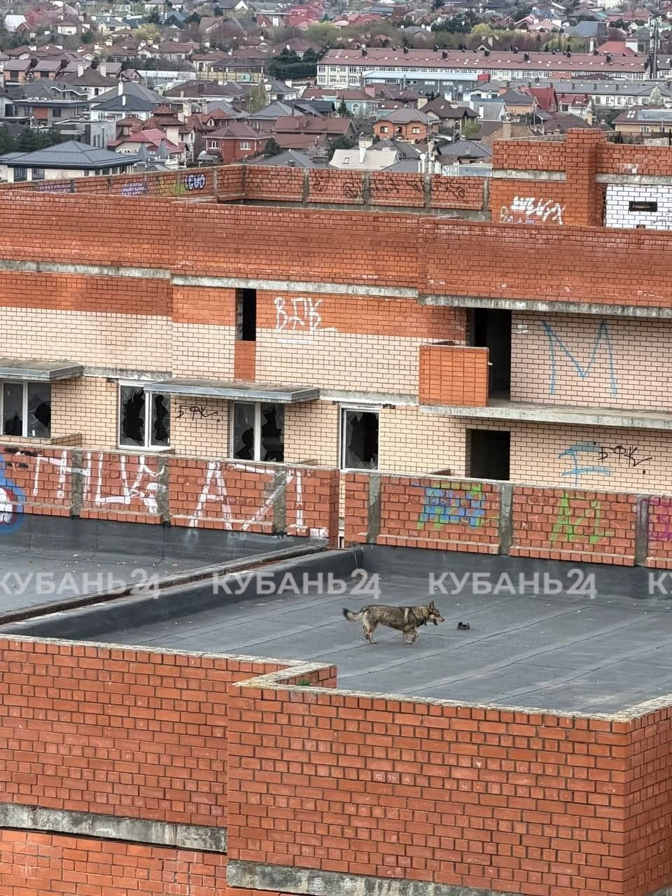 Собака с ошейником несколько дней бегает по крыше недостроя в Краснодаре.