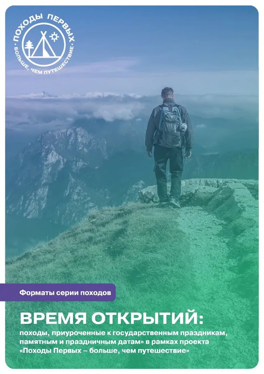 Вас ждёт серия захватывающих походов «Время открытий» – 11 общероссийских походов, приуроченных к важным датам, которые станут настоящими днями единых действий.