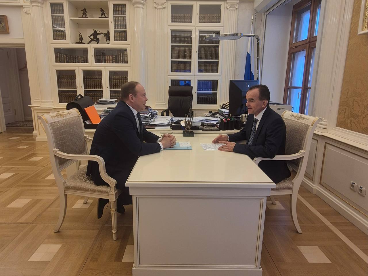 О реализации в Краснодарском крае нацпроектов поговорил Вениамин Кондратьев с руководителем Администрации Президента России Антоном Вайно.