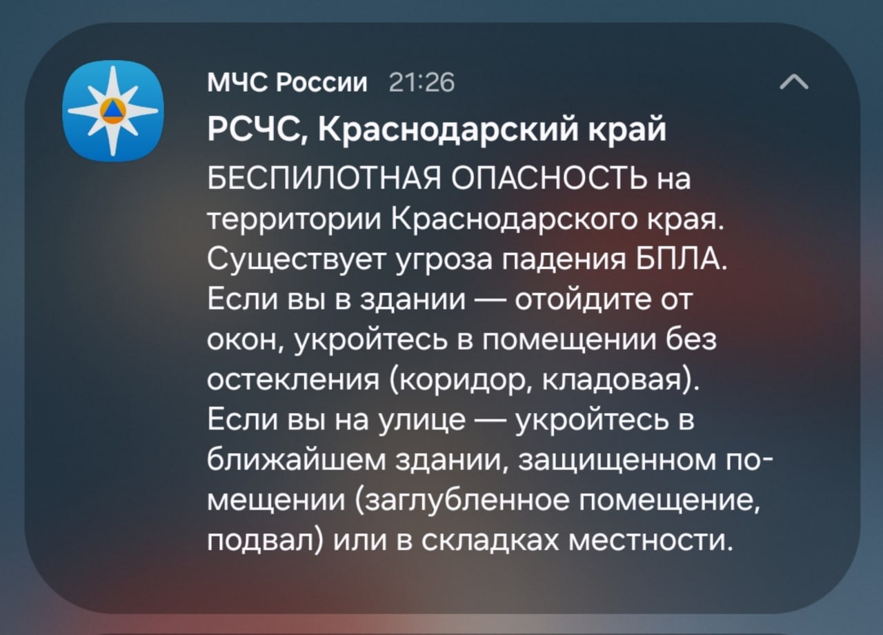 На территории Новороссийска ОБЪЯВЛЕНА УГРОЗА атаки беспилотников (БПЛА) Уважаемые жители и гости города-героя! При включении сирен – сигнала «Внимание всем»:Если вы находитесь дома – не подходите к окнам. Укройтесь в комнате, окна которой не выходят...