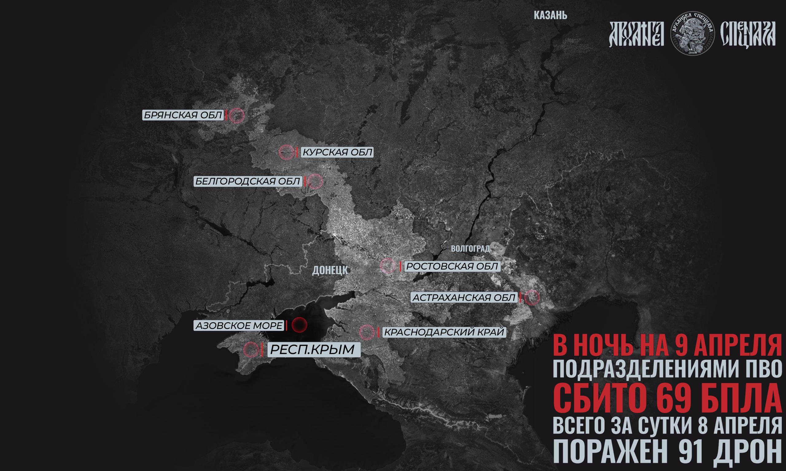 За прошедшую ночь украинские дроны фиксировались относительно недалеко от фронта, самым дальним регионом, где сбивали БпЛА, стала Астраханская область.