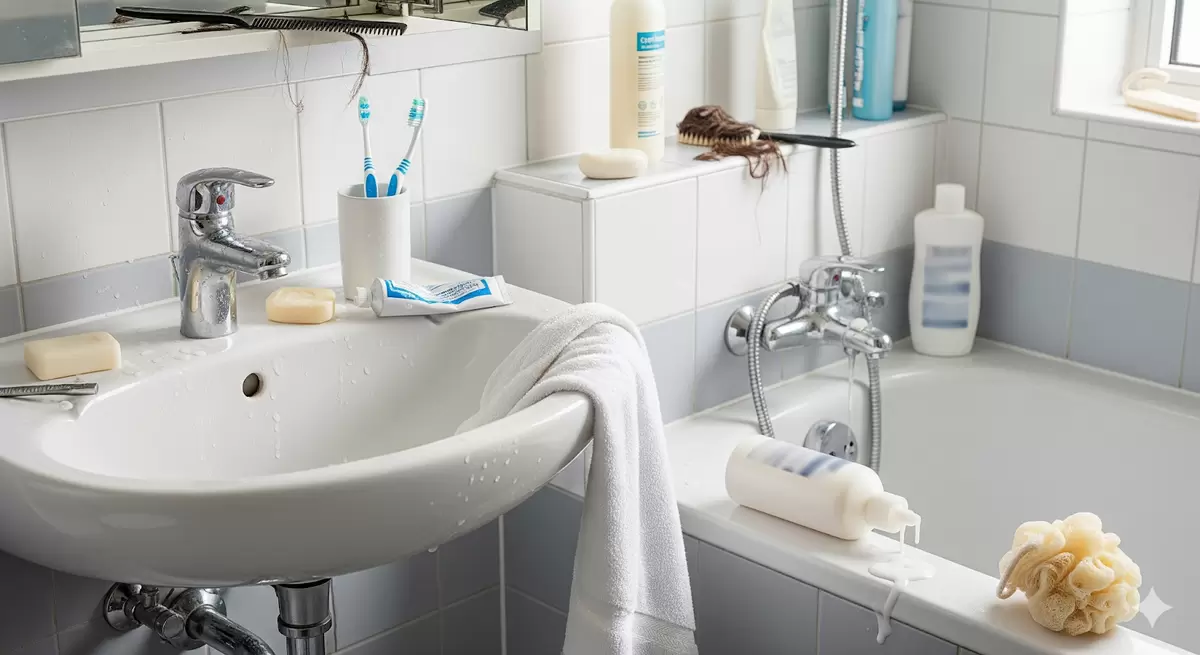 - Частый поток людей. Каждый визит приводит к разбросу средств личной гигиены и других аксессуаров.