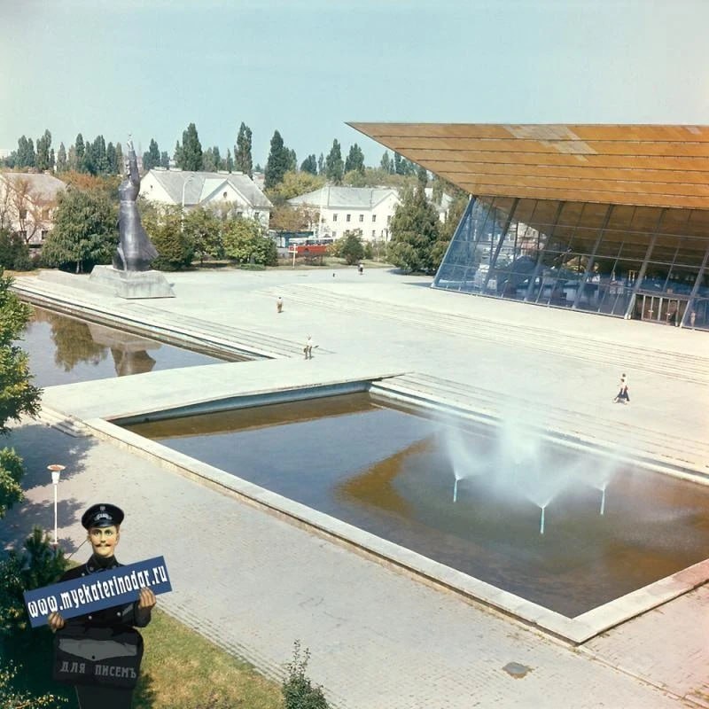 На переднем плане – легендарная «Аврора» и, конечно, всеми любимый фонтан, который собирал вокруг себя сотни краснодарцев.
