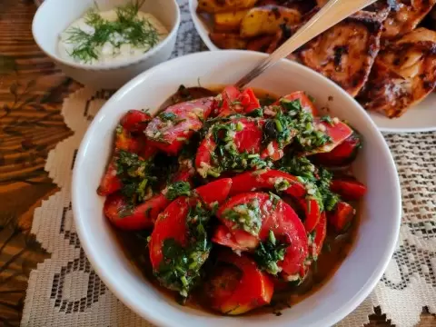 Летние помидоры, спелые и ароматные, могут стать настоящим кулинарным шедевром. Приготовление свежей закуски, которая отлично дополнит шашлыки, — это не только просто, но и невероятно вкусно!