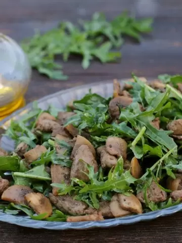 Этот восхитительный салат сочетает в себе нежную куриную печень, ароматные грибы и пикантную рукколу. Уникальное сочетание вкусов создаёт сложный, но в то же время гармоничный гастрономический опыт, который не оставит равнодушным никого. Здесь нет необходимости ожидать, пока ингредиенты настоятся или остынут. Этот салат можно подавать сразу, наслаждаясь теплотой и свежестью.