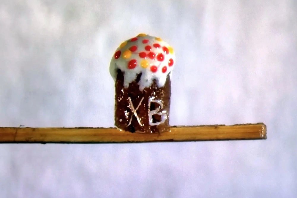 Первый кулич испек омский микроминиатюрист Анатолий Коненко. Высота изделия, которое помещается на волосе, — 1,75 мм. Оно было сделано из муки, яйца, дрожжей и сахара в обычной духовке.