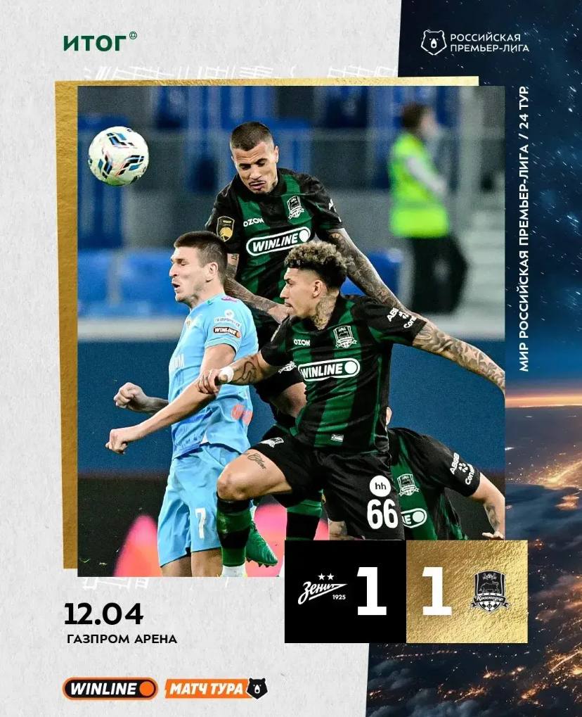 Южане сыграли с «Зенитом» вничью – 1:1. Единственный гол в составе «быков» забил защитник Лукас Оласа точным дальним ударом.