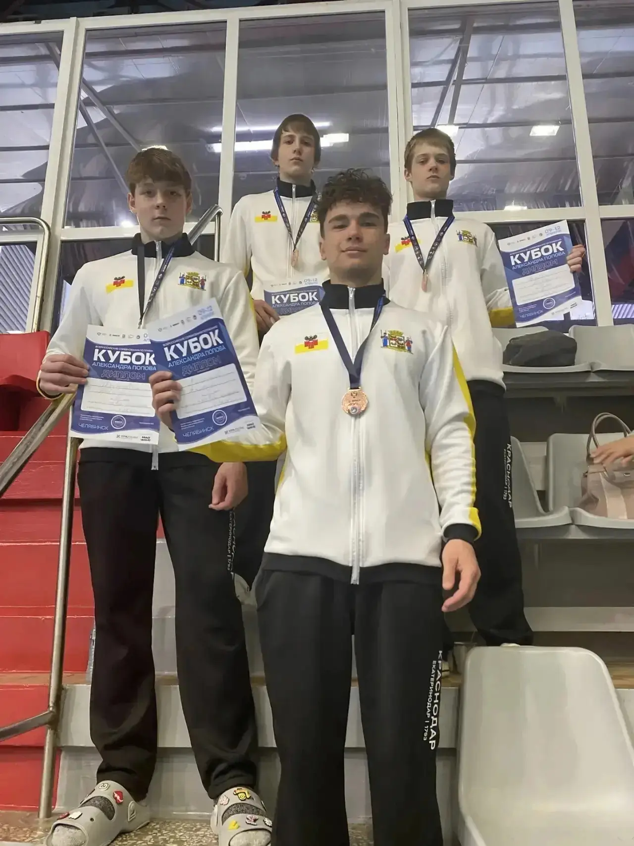 Бронзовыми призерами в составе сборной команды Краснодарского края на дистанции 4х100 метров вольным стилем стали Дубровин Григорий и Лапышев Андрей.