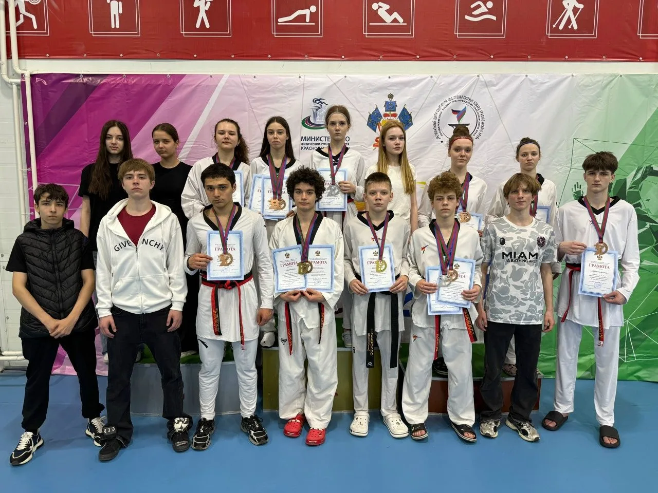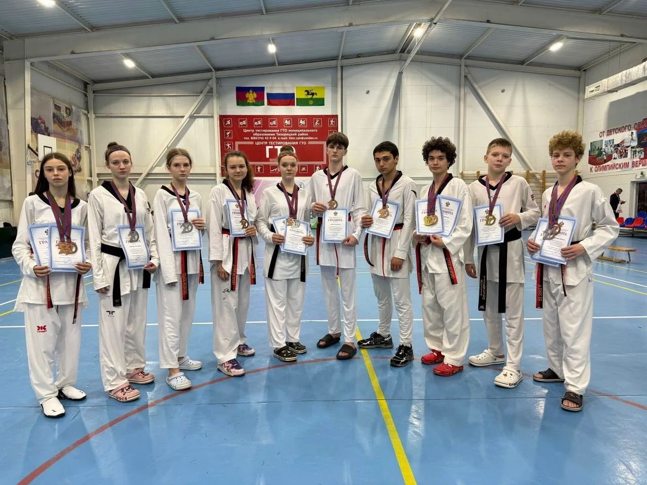По итогам соревнований победителями стали Марк Кочегура и Виталий Рябыш. Серебряные медали завоевали Сабина Шарафуллина, Полина Зуева, Анастасия Маслова и Максим Невмержицкий. На третью ступень пьедестала поднялись Ксения Грачева, Елизавета Чаплыгина, Арсений Свиридов и Давид Петросян. Тренируются спортсмены в СШ «Олимп» и клубах Федерации тхэквондо Ейского района под руководством Сергея Шапкина, Дениса Бандурко и Дмитрия Белозерова. #администрацияЕйскийрайон