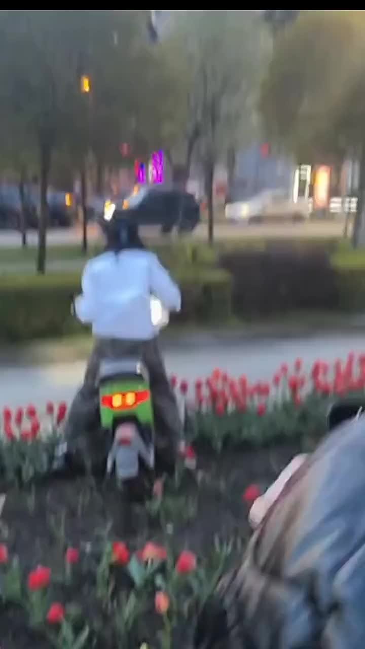 В соцсетях распространилось видео, как девушка на улице Красной во время управления скутером повредила высаженные тюльпаны.