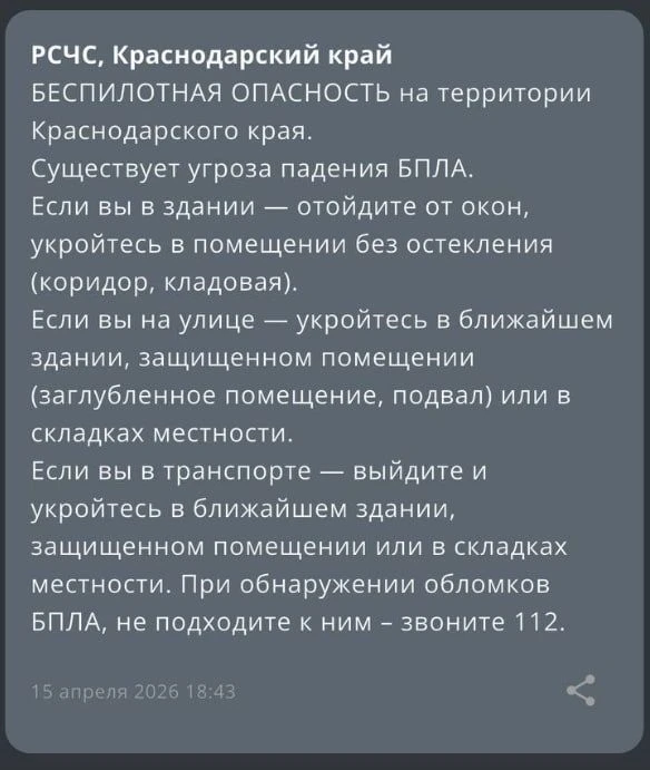 Ракетную опасность объявили в Туапсинском округе Об этом сообщил глава муниципалитета Сергей Бойко. Быть в курсе | Мы в MAX// Россия. Кубань | Новости