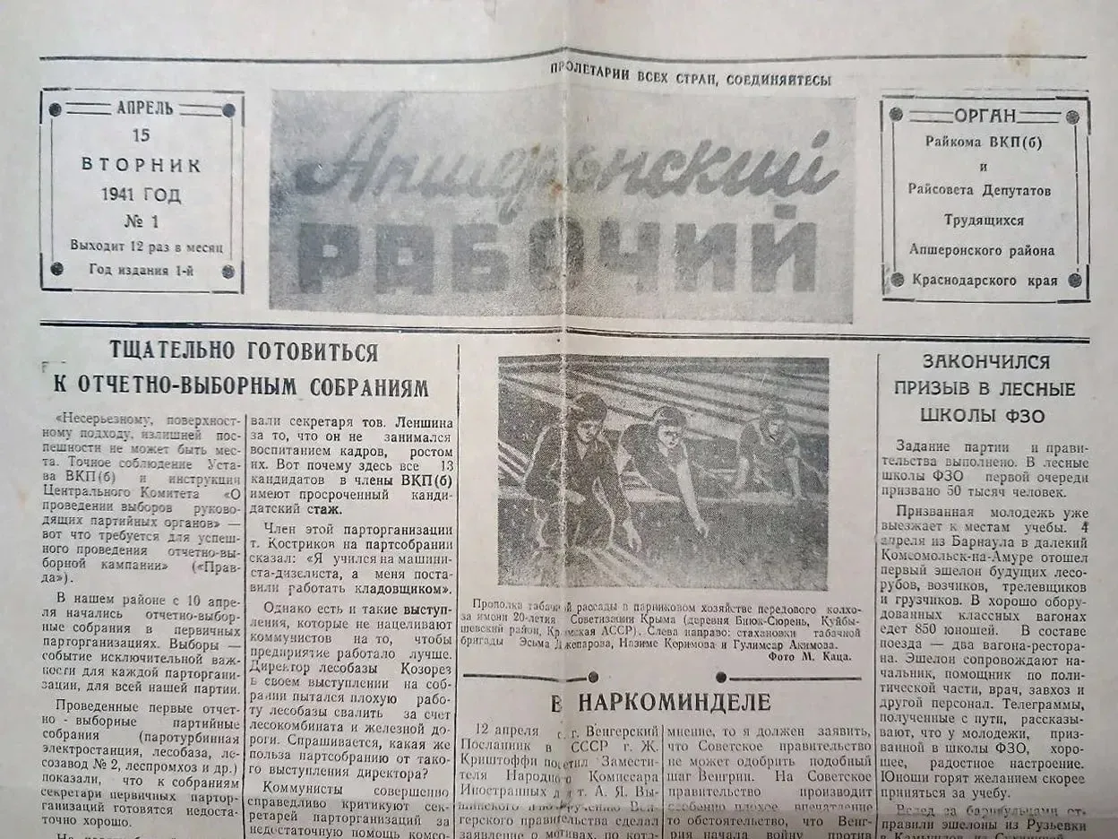 15 апреля газета "Апшеронский рабочий" отметила 85-летний юбилей. В этот день в 1941 году в свет вышел первый выпуск.