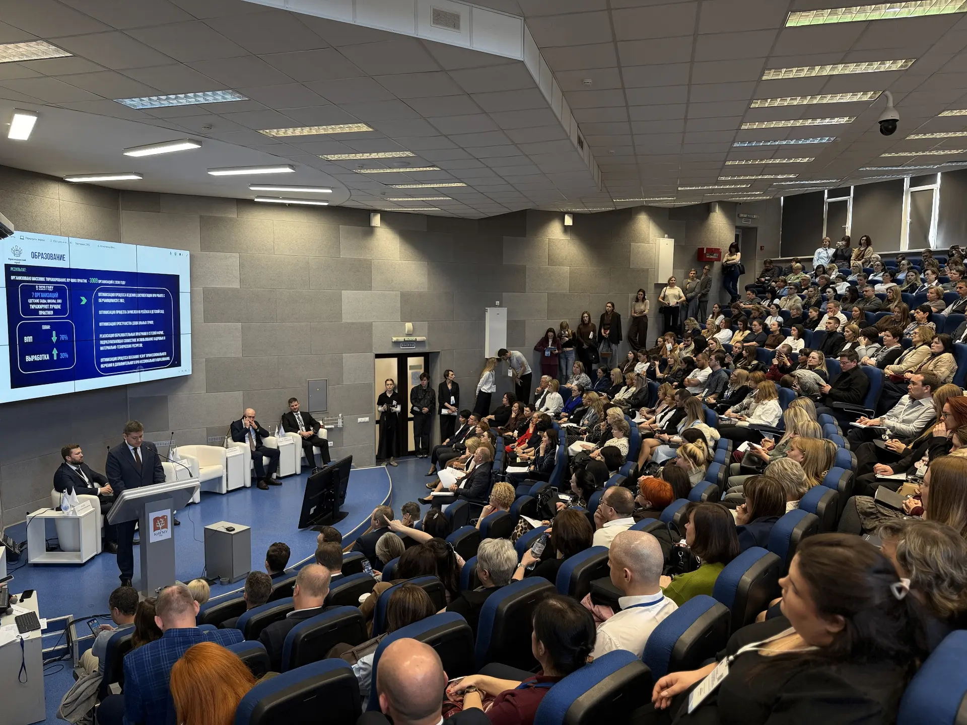 В зале КубГМУ собрались 350 человек – представителей здравоохранения, соцзащиты, спорта, культуры и образования. Еще более 1000 подключились к мероприятию дистанционно. В мероприятии также принял участие руководитель проекта «Производственная система «Росатом» Сергей Ильин.