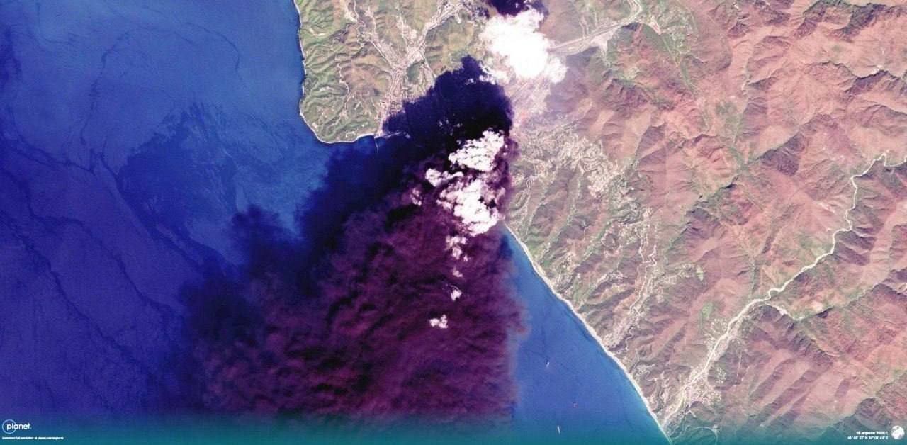 Пожар на НПЗ в Туапсе Краснодарского края после атаки украинских беспилотников.