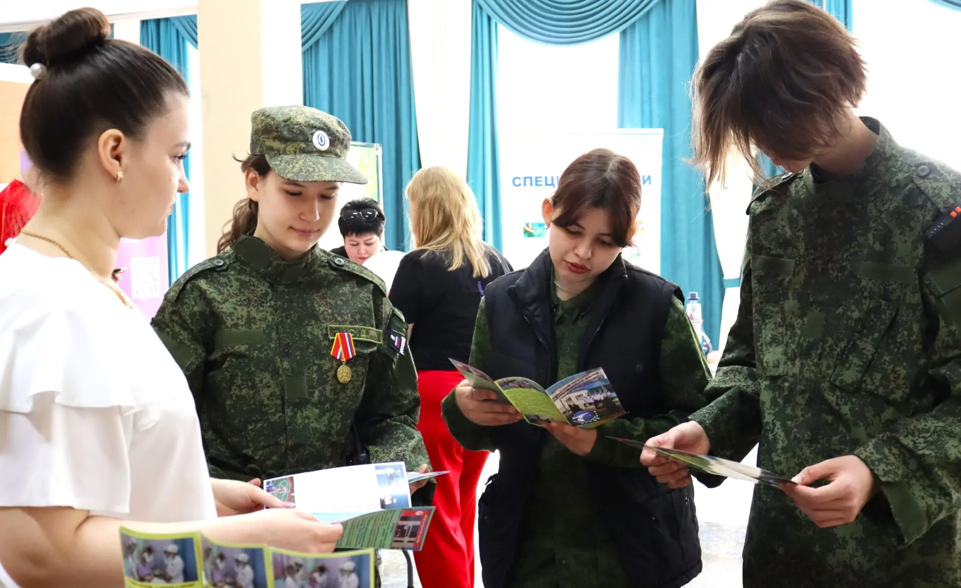 Посетить Всероссийскую ярмарку трудоустройства сегодня пригласили школьников и студентов с целью профориентации и организации досуга. Свои демонстрационные площадки в двух залах городского центра народной культуры развернули Ейский полипрофильный, медицинский и рыбопромышленный колледжи, а также местный филиал РИНХ и Компьютерная академия ТОП. Своих представителей командировали Краснодарский кооперативный институт г.Краснодара и Государственный морской университет имени Ф. Ф. Ушакова, который имеет свои филиалы в Новороссийске, Ростове-на-Дону и Севастополе. Мастер-классами, выставками, демонстрационными выступлениями и наградами воспитанников за достижения представлены клубы по месту жительства: «Ермак», «Прометей», «Выстрел», «Медведь», «Солнечный», «Спарта» и «Творческая молодежь». Молодых, энергичных, талантливых ейчан приглашают раскрыть свой потенциал в творчестве, спорте, военной и патриотической деятельности. В свои ряды приглашают молодежные волонтерские движения.