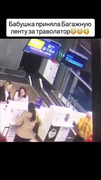 Пожилая пассажирка в аэропорту Владикавказа перепутала багажную ленту с траволатором и случайно уехала прямо в багажное отделение