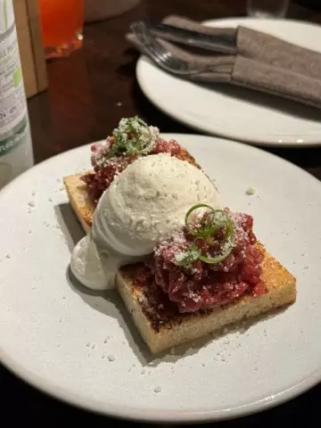- Тартар с муссом из трюфеля — сочетание яркого говяжьего вкуса и нежной текстуры перенесло всех присутствующих в гастрономический рай.