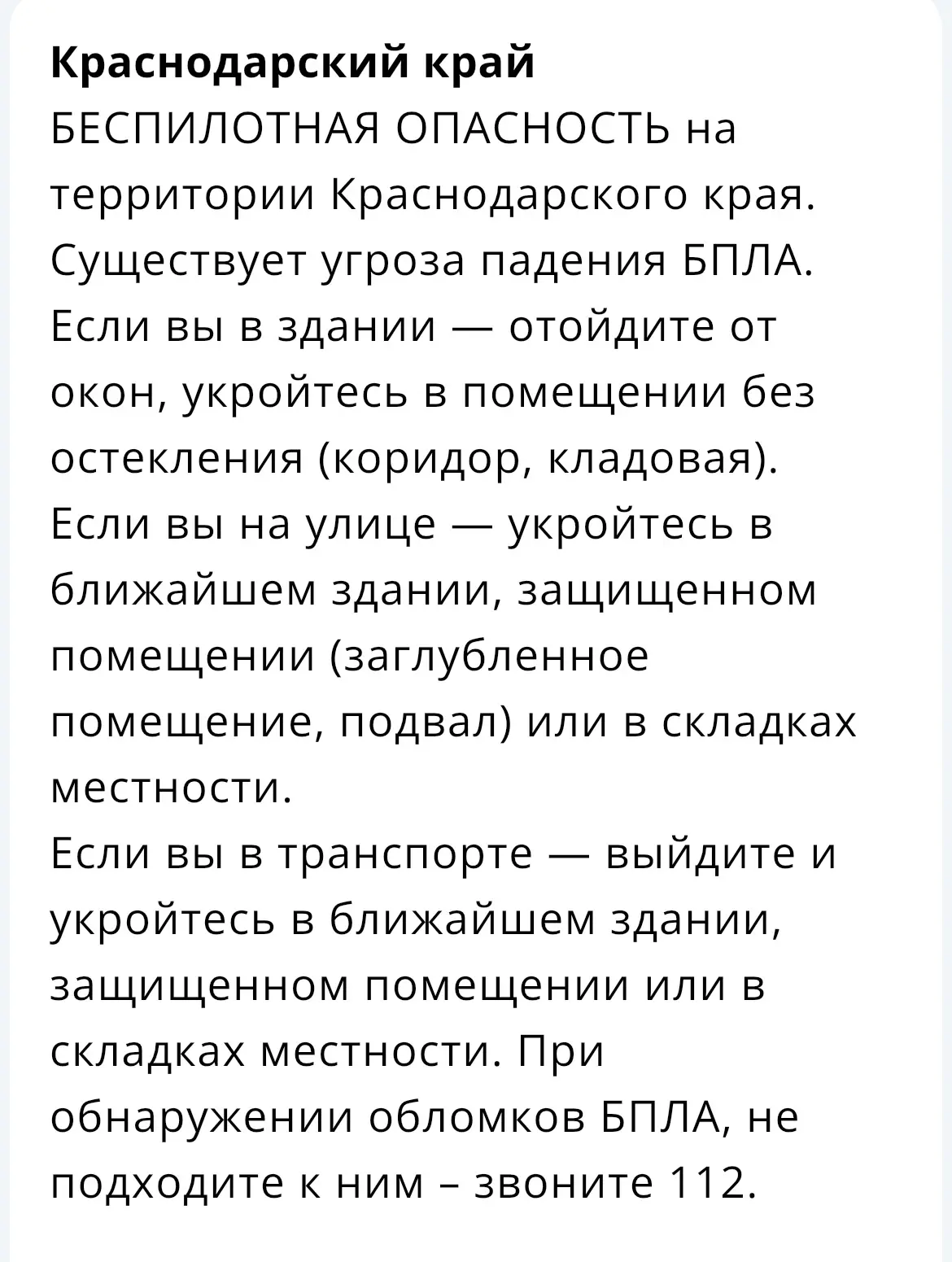 На Кубани объявили беспилотную опасность