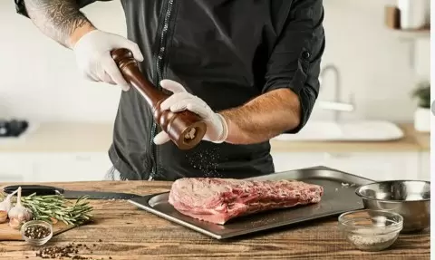 Подготовка мяса — важный этап. За 1-2 часа до готовки его следует достать из холодильника, чтобы оно достигло комнатной температуры. Также рекомендуется обсушить мясо с помощью бумажных полотенец: сухая поверхность лучше подрумянивается. Маринация необязательна, но может значительно улучшить вкус. Для говядины подойдут оливковое масло, розмарин и чеснок, для свинины — горчица, мед и соевый соус. Баранину стоит замариновать с лимонным соком и орегано.