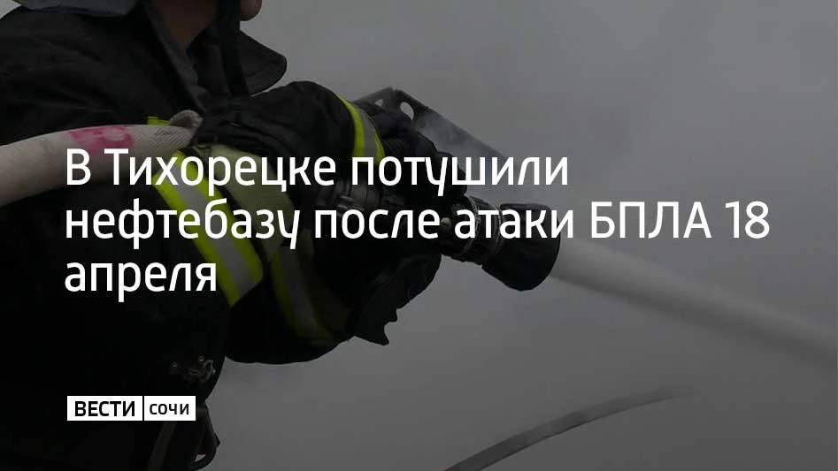 В городе Тихорецке Краснодарского края ликвидировали возгорание на территории нефтебазы. Пожар возник в ночь с 17 на 18 апреля из-за атаки беспилотников. Никто из работников не пострадал, сообщает краевой оперштаб.