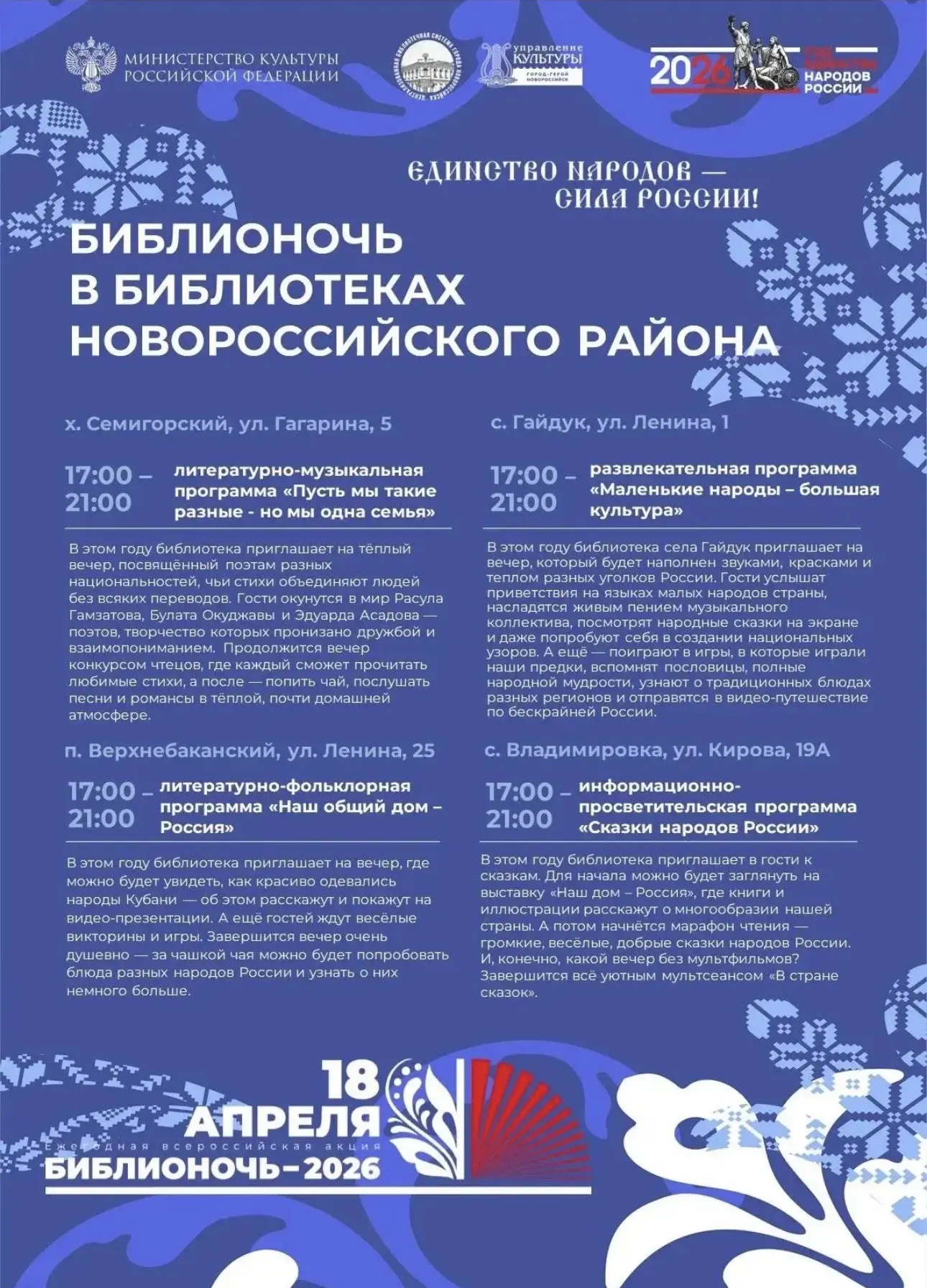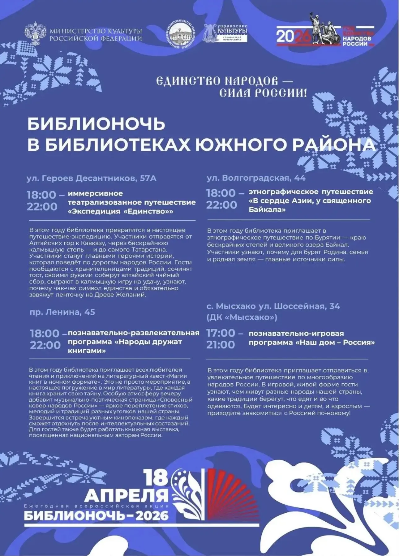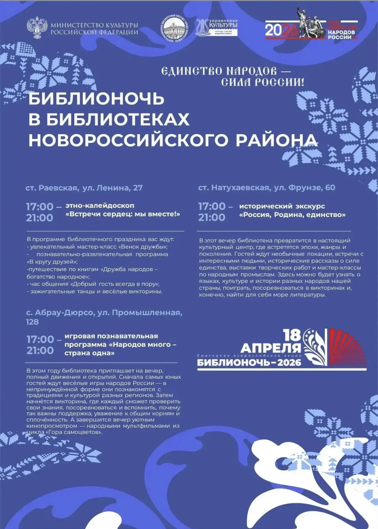 В 2026 году тема акции «Библионочь» – «Единство народов – сила России». Она объединит свыше тысячи библиотек региона.