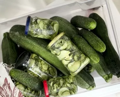 - 1 кг свежих огурцов;