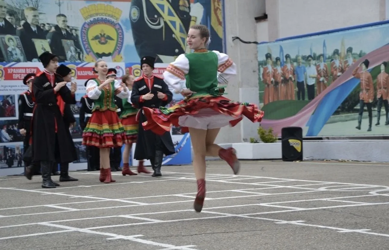Перед гостями кадеты продемонстрировали свои творческие способности. В ярком концерте на плацу выступили взвод барабанщиков и взвод почетного караула, хореографический ансамбль корпуса, сводный ансамбль казачьей песни кадет и воспитанников Центра казачьей культуры Новороссийска.