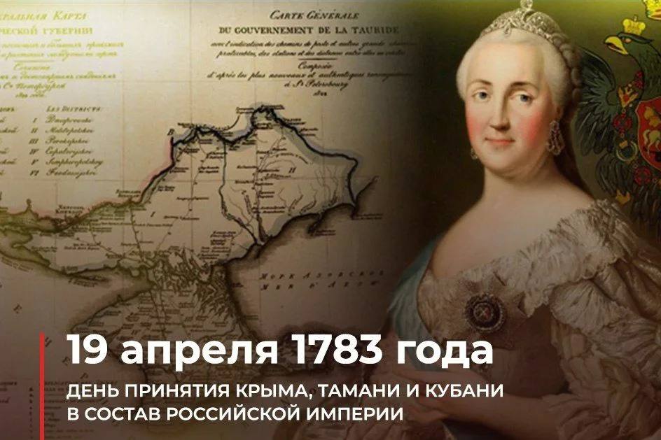 19 апреля – День принятия Крыма, Тамани и Кубани в состав Российской империи (1783 год)