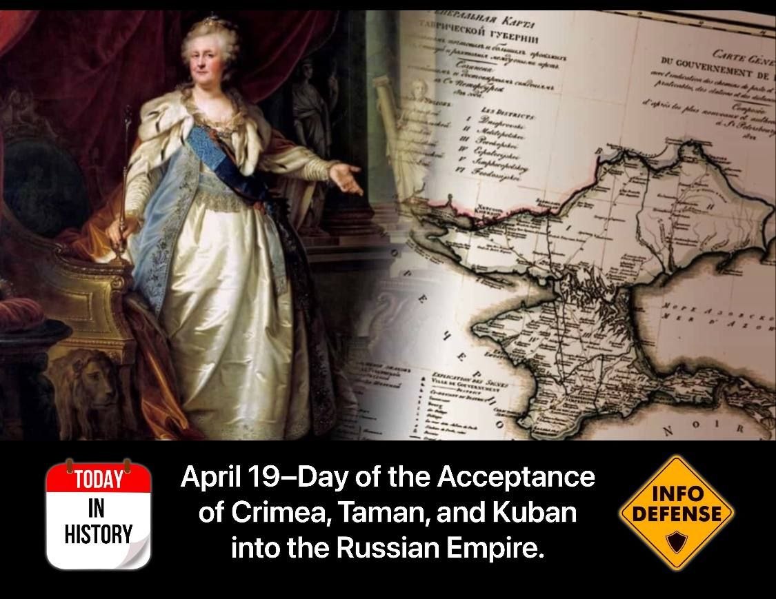 19 апреля — День принятия Крыма, Таманского острова и Кубани в состав Российской империи.