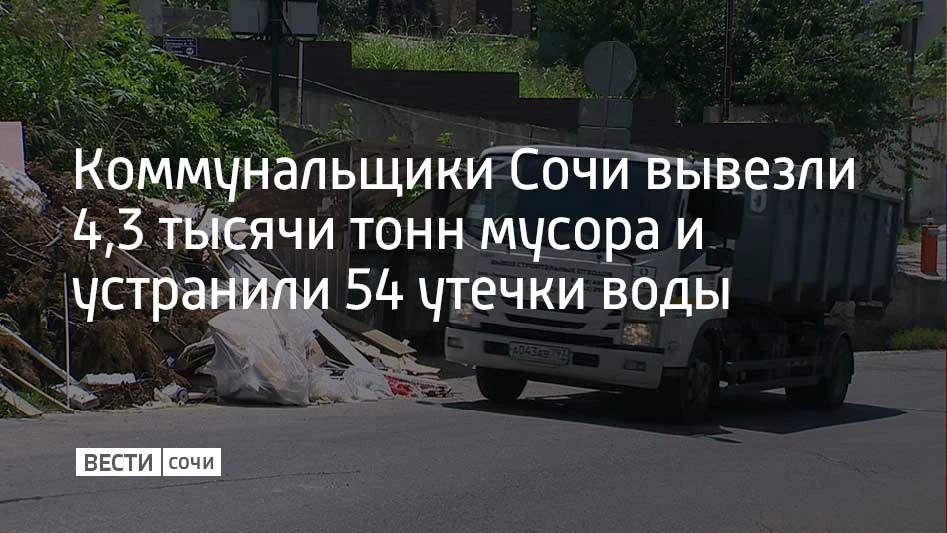В Сочи за минувшую неделю коммунальщики вывезли около 4,3 тысячи тонн твердых коммунальных отходов. Также прочистили 7,3 километра ливневок на 43 улицах, вывезли 36,3 кубометра ила и грунта, отремонтировали 4 ливнестока. Теплосети латали на Кирова, Звездной, Тургенева и Роз.