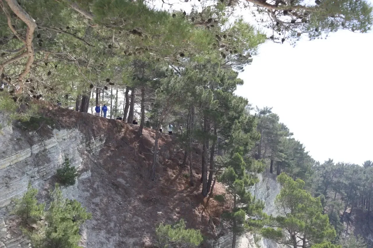 Следующая остановка - Голубая бездна, уникальное место между селом Дивноморское и хутором Джанхот, где соединились море, горы и реликтовые пицундские сосны.