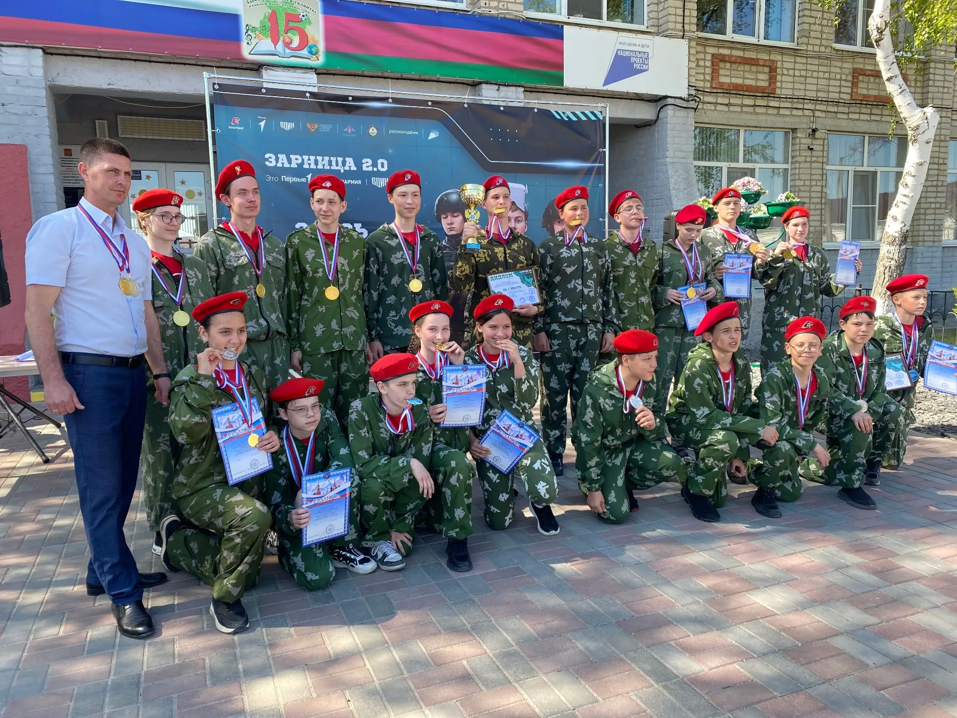 «Зарница 2.0» — масштабная всероссийская игра с применением цифровых технологий, флагманский проект Движения Первых и Юнармии. Это современная версия легендарной военно-патриотической игры, которая объединяет Первых по всей стране. Участники проходят этапы, требующие выносливости, знаний, командной работы и умения принимать решения. Местом проведения стала школа №15 им. Героя Советского Союза С.Д. Малого.