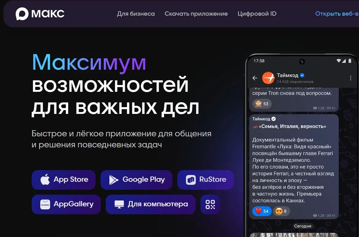 Как сообщают в РИА Новости , национальная цифровая платформа МAX сменила название на «Макс».