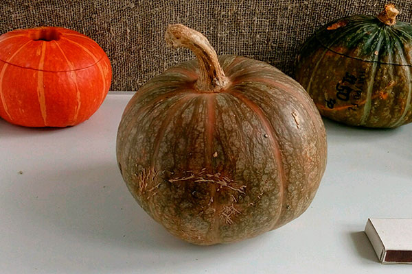 - Плоды: средней величины, округлой формы, весом от 1,4 до 4 кг. Плоды отличаются темно-серой кожурой и интересным узором на поверхности.