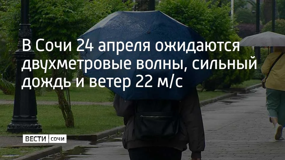 С утра и до конца суток 24 апреля в Сочи и Сириусе прогнозируют сильные дожди с ливнями, местами грозу и ветер порывами до 20-22 метров в секунду. На участке от Магри до Веселого волнение моря достигнет 4-5 баллов, высота волн — 1,3-2 метра, в Лазаревском районе — до 2,5 метра.