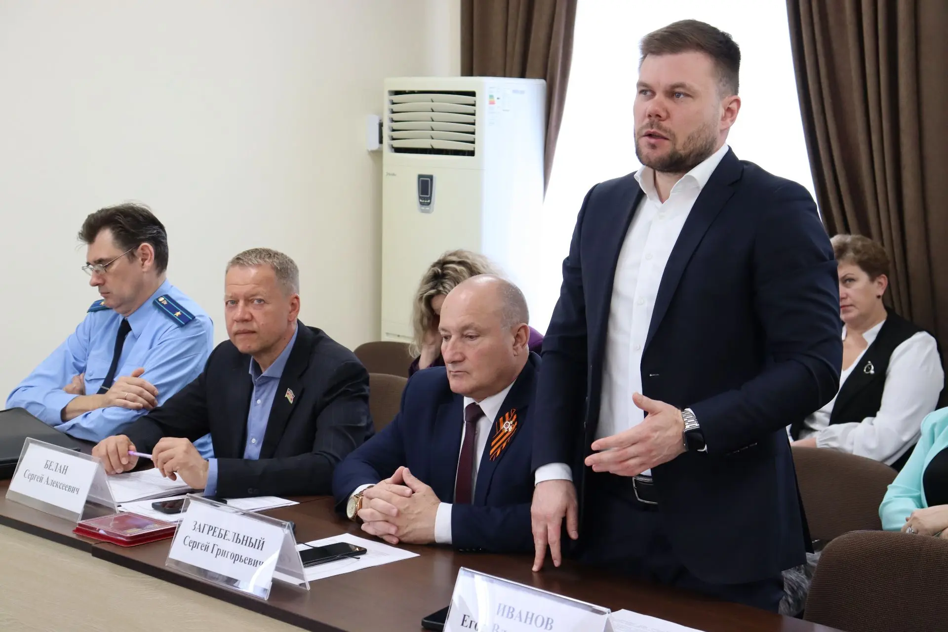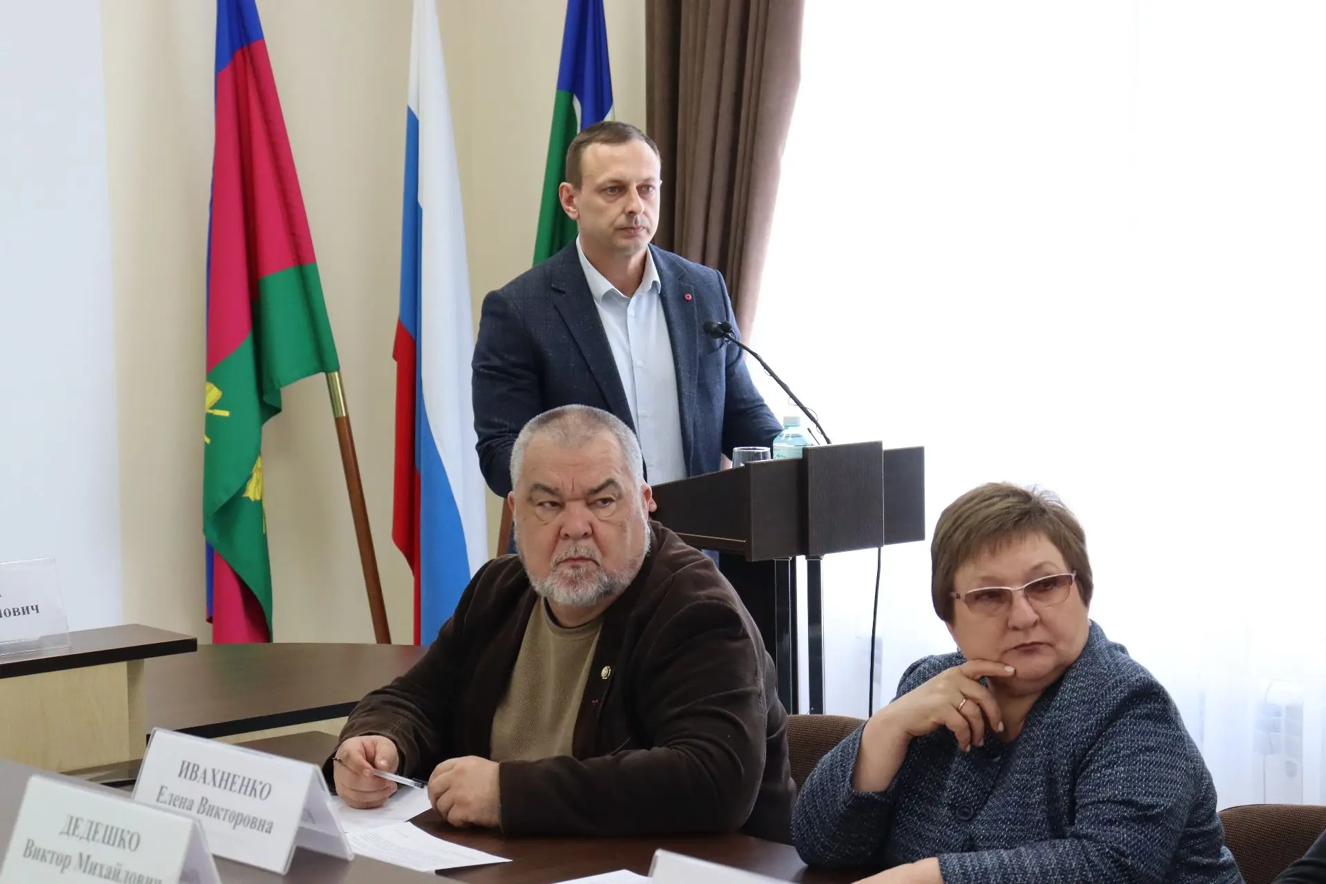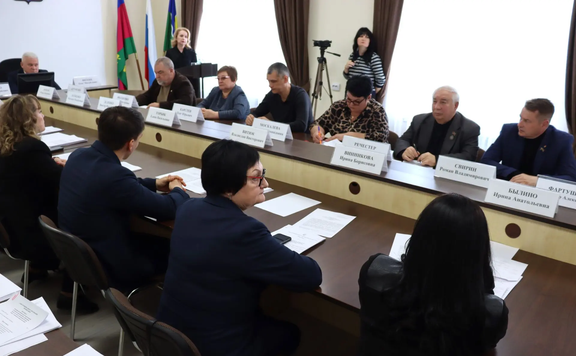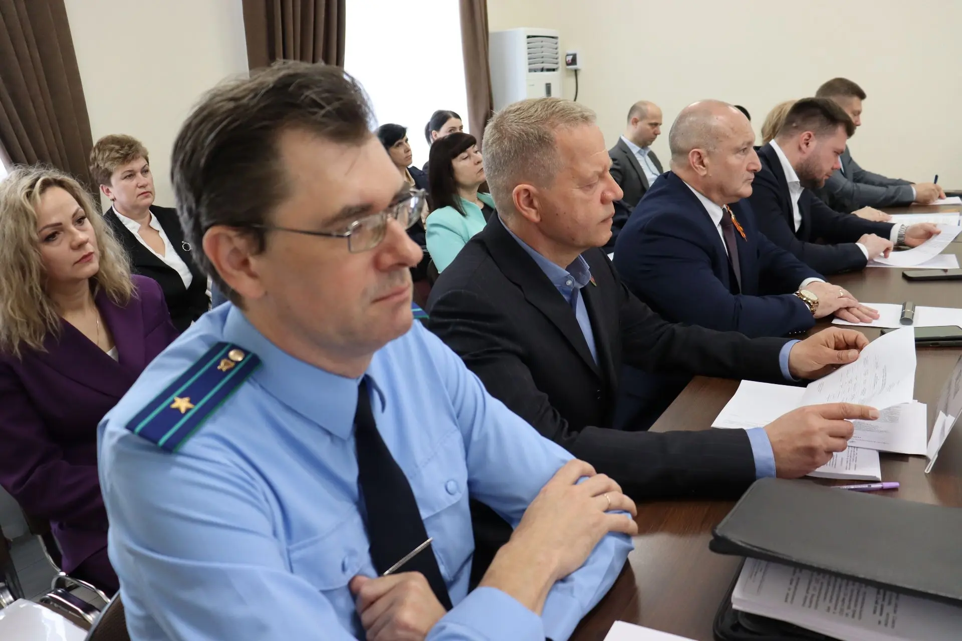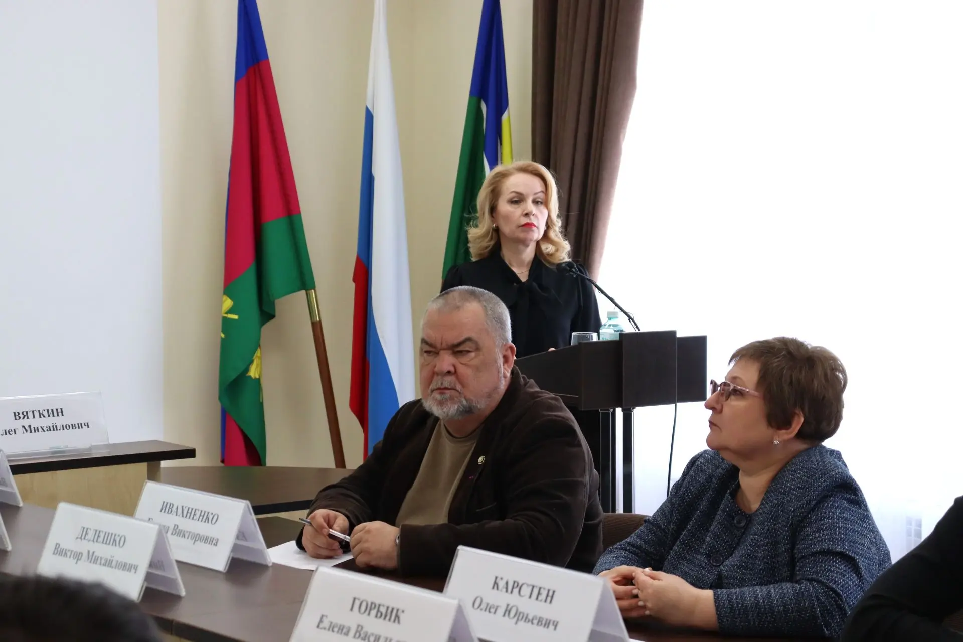 Прошла она под председательством Олега Вяткина и и.о.главы Ейского района Михаила Дьяченко в президиуме. Также в заседании приняли участие: межрайонный прокурор Олег Ивашков, депутат ЗСК Сергей Белан, заместители главы муниципалитета Александр Тириченко, Елена Карпухина, Егор Иванов, Сергей Загребельный, главы поселений, председатель КСП Ейского района Светлана Чаленко, руководители структурных подразделений администраций города и района, СМИ и другие.