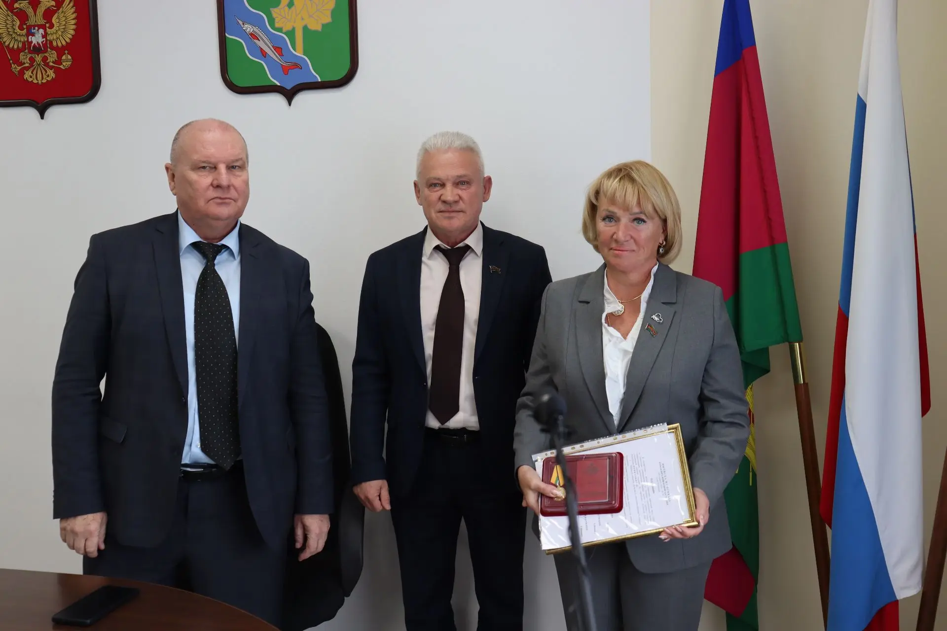 Началось заседание с торжественного момента. Очередной наградой отмечена гуманитарная миссия депутата районного Совета Лючии Шулешовой по оказанию помощи участникам СВО. Коллеги и все присутствующие присоединились к поздравлениям.