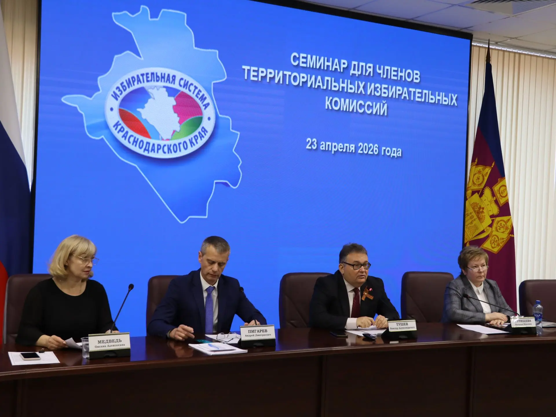 В ходе семинара участникам были представлены ключевые изменения избирательного законодательства в 2025 – 2026 годах, а также обзор постановлений избирательной комиссии Краснодарского края, касающихся подготовки и проведения муниципальных выборов.