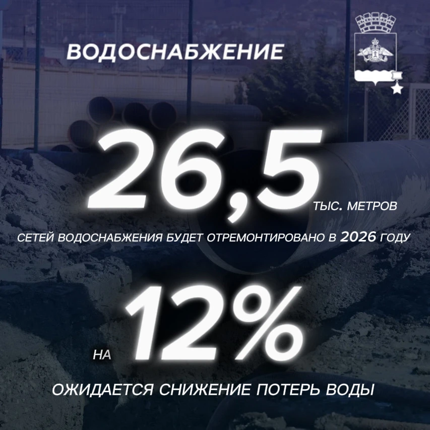 Планомерно продолжаем работу в этом направлении и наращиваем объемы. В 2026 году отремонтируем 26,5 тысяч метров сетей водоснабжения и проведем ряд других мероприятий, которые позволят вернуть в сети еще 9 тысяч куб. метров и сократить потери на 12%. Тем самым к концу года потери должны составить 53,5%.