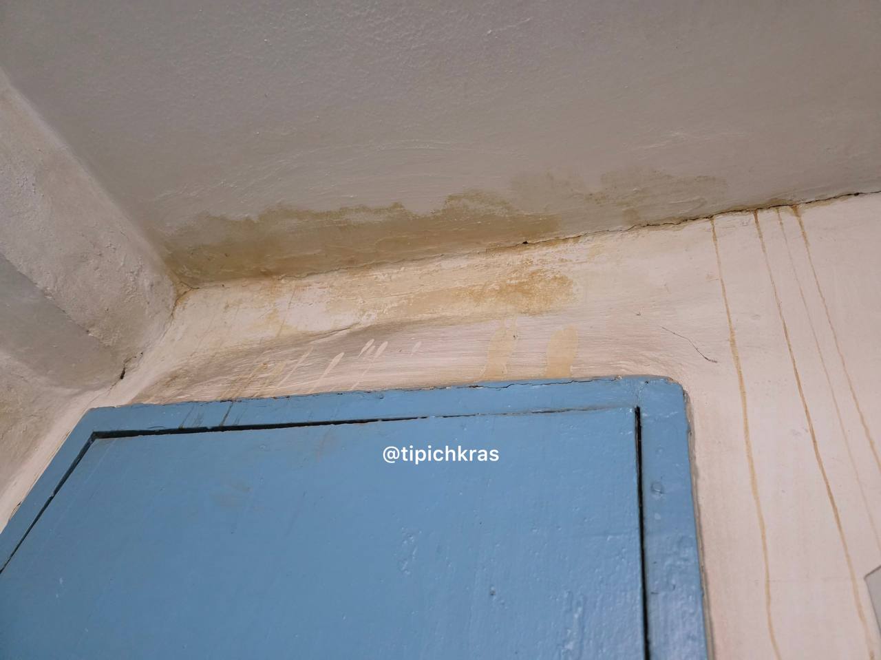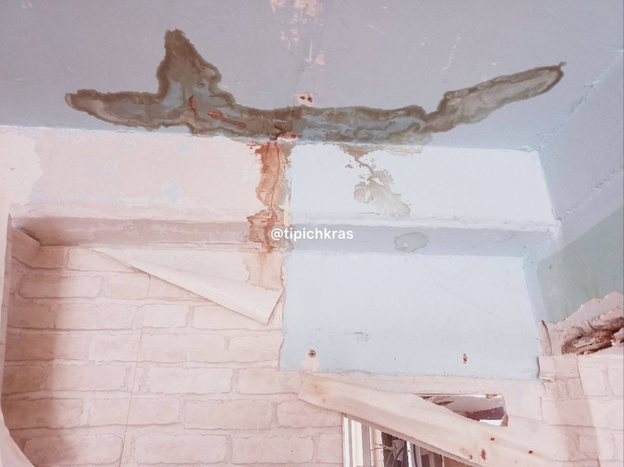 - Бабушкина, 281/2. В доме идет капремонт крыши. В течении месяца при каждом дожде, даже небольшом, топит квартиры, лестничные площадки. Вода льется по электрощиткам. Представители фонда капремонта разводят руками, мол, пока идут дожди, ничего сделать не можем. На потолках - плесень. После каждого дождя сливаем воду с натяжных потолков.